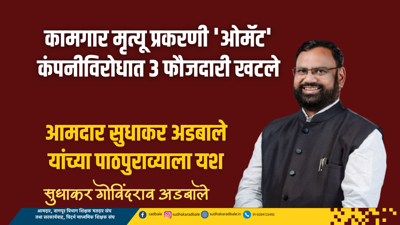 चंद्रपूर : ताडाळी येथील औद्योगिक वसाहतीतील ओमॅट वेस्ट लिमिटेड कंपनीत कामगारांच्या मृत्यूची घटना घडली असून, त्यांच्या कुटुंबियांना आर्थिक मदत देण्याची व कंपनीवर कारवाई करण्याची मागणी आमदार सुधाकर अडबाले यांनी विधीमंडळात तारांकित प्रश्नाद्वारे केली होती. दोन्ही अपघातांबाबत औद्योगिक सुरक्षा व आरोग्य संचालनालयाकडून चौकशीदरम्यान आढळून आलेल्या भंगाबाबत मा. मुख्य न्यायदंडाधिकारी, न्यायालय चंद्रपूर यांच्या न्यायालयात कारखान्याचे भोगवटादार यांचे विरूध्द एकूण ३ फौजदारी खटले दाखल करण्यात आल्याचे कामगार मंत्र्यांनी सांगितले.
