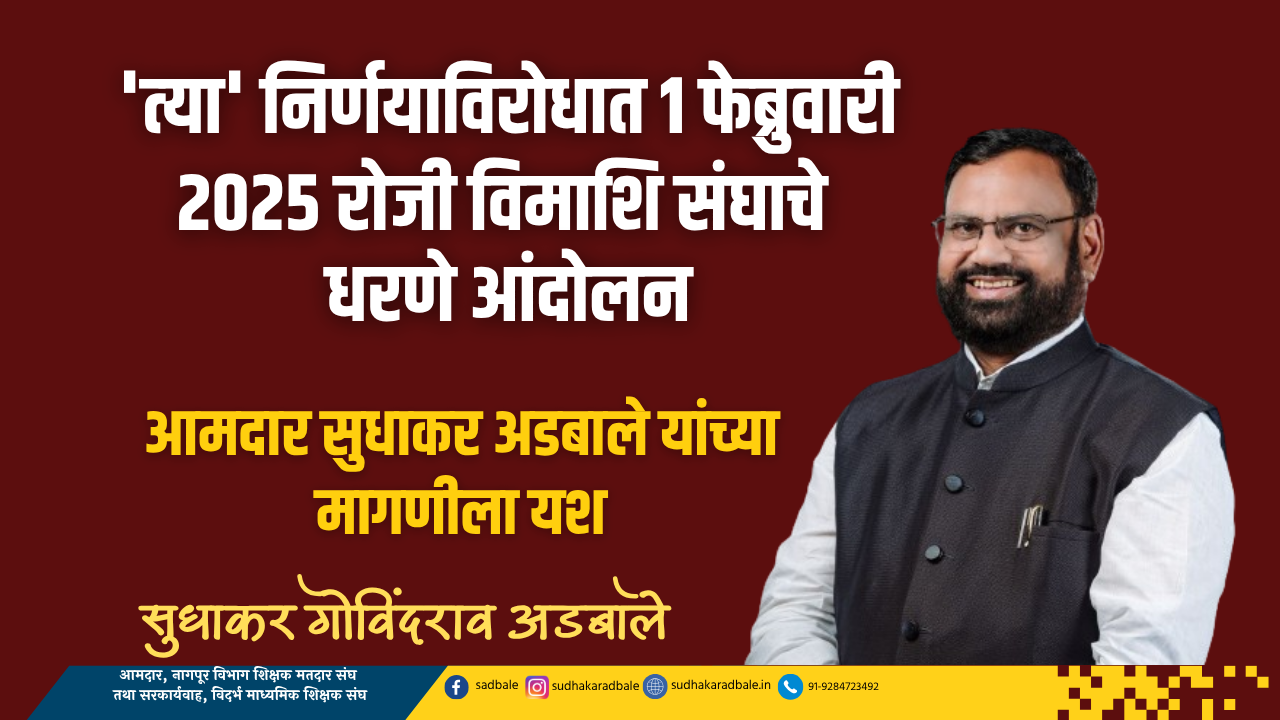 हा निर्णय अनेक अडचणी निर्माण करणारा ठरतो आहे. त्यामुळे सदर निर्णय तात्काळ रद्द करण्यात यावा, या मागणीसाठी माजी आमदार व्ही. यू. डायगव्हाणे यांच्या मार्गदर्शनात व विमाशि संघाचे सरकार्यवाह तथा आमदार सुधाकर अडबाले यांच्या नेतृत्वात विदर्भ माध्यमिक शिक्षक संघाच्या वतीने नागपूर विभागीय बोर्ड कार्यालयासमोर १ फेब्रुवारी २०२५ रोजी दुपारी ३ ते ५ वाजेपर्यंत धरणे / निदर्शने आंदोलन करण्यात येणार आहे. या धरणे आंदोलनात विदर्भ ज्युनिअर कॉलेज टिचर्स असोसिएशन, राज्य शिक्षक मंडळ, विभागीय अनु. आ. आश्रमशाळा कर्म. संस्कृती संघटना व इतर समविचारी शिक्षक – शिक्षकेत्तर कर्मचारी संघटना सहभागी होणार आहेत.