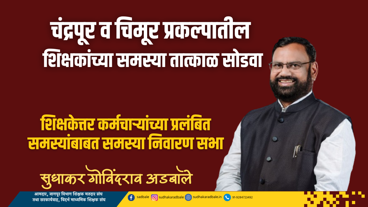 चंद्रपूर व चिमूर प्रकल्पातील शिक्षकांच्या समस्या तात्काळ सोडवा : आमदार सुधाकर अडबाले
