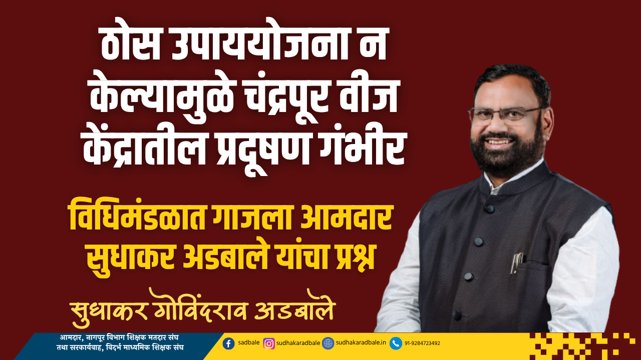 निकृष्ट दर्जाचा कोळसा वापरून अनियमितता करून प्रदूषण वाढवणाऱ्या चंद्रपूर महाऔष्णिक वीज केंद्रातील अधिकारी आणि यास पाठबळ देणाऱ्या प्रदूषण नियंत्रण मंडळाच्या अधिकाऱ्यांवर कारवाई करणार का? हवा प्रदूषण कायदा १९८१ च्या कलम २२ आणि २४ नुसार प्रदूषण नियंत्रण मंडळाने महाऔष्णिक वीज केंद्राची आजपर्यंत तपासणी केली का? तसेच प्रदूषण नियंत्रणासाठी ठोस उपाययोजना केल्या आहेत का? असा प्रश्न आमदार सुधाकर अडबाले यांनी उपस्थित केले.