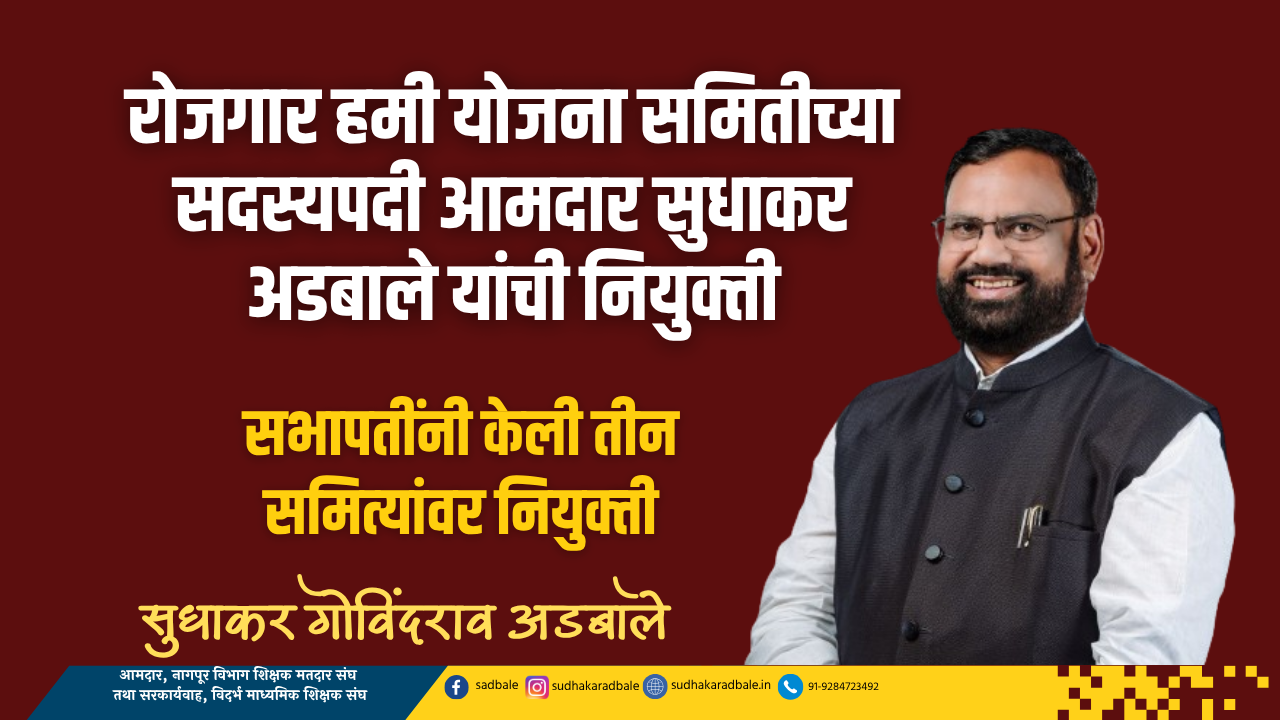रोजगार हमी योजना समितीच्या सदस्यपदी आमदार सुधाकर अडबाले यांची नियुक्ती