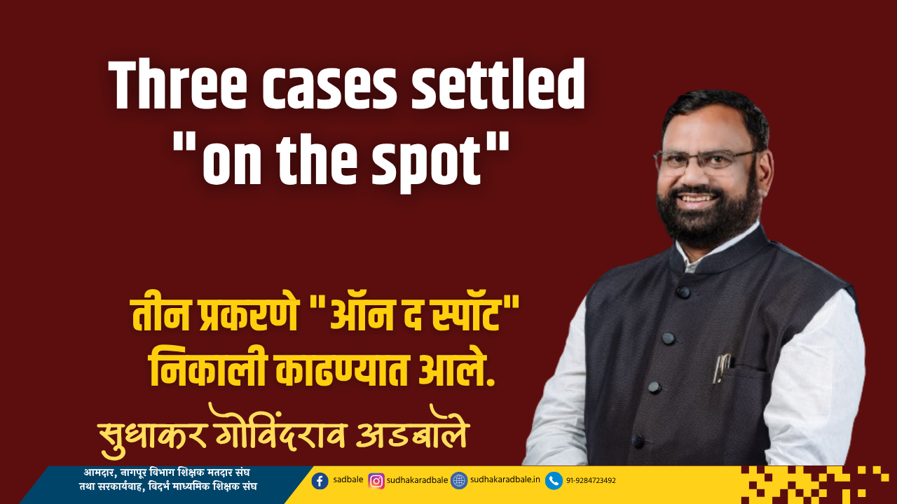 नागपूर जिल्ह्यातील शिक्षक – शिक्षकेत्तर कर्मचाऱ्यांच्या प्रलंबित समस्यांबाबत शिक्षणाधिकारी (प्राथमिक / माध्यमिक) यांच्यासोबत बैठक घेतली. यावेळी तीन प्रकरणे “ऑन द स्पॉट” निकाली काढण्यात आले.